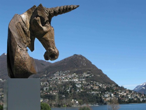 Notre succursale et notre Licorne monumentale, sculptée par feu Nag Arnoldi, côtoient le Lugano Arte e Cultura.